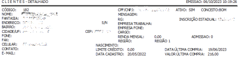 • Detalhada: Exibe todas as informações da ficha cadastral do cliente.
