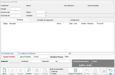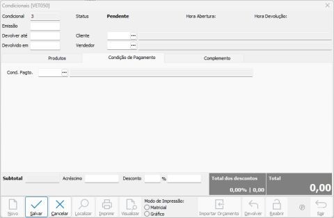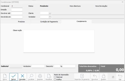 | Cond. Pagto. | Condição de pagamento vinculada ao condicional. |