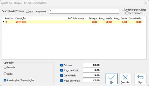Ajuste do Estoque - Modelo 2