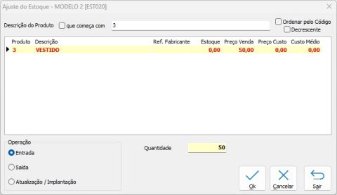 Menu Estoque → Ajuste de Estoque – Modelo 2 [EST020]