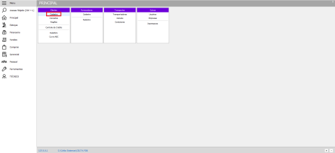 - No menu lateral principal, localize o grupo Clientes e clique na opção Cadastro.