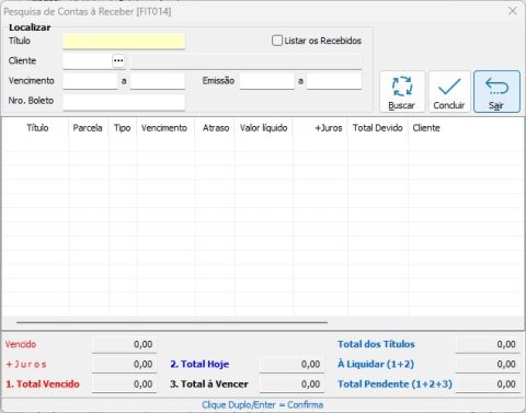 | Listar os Recebidos | Exibe títulos já recebidos. |