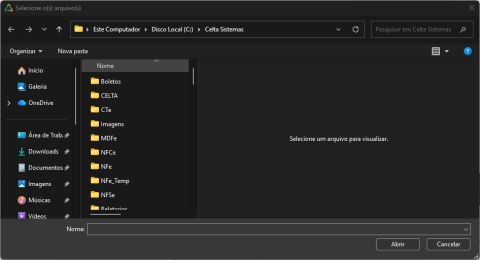 Ao acionar o botão, será exibida a tela de seleção de arquivos do sistema.
