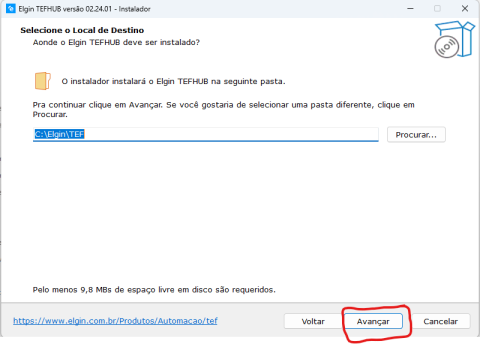 Siga os passos de instalação do TEF Hub na máquina que será o servidor de TEF: