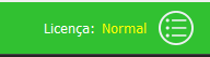 As informações da licença ficam no rodapé do sistema (barra verde inferior), no canto direito.