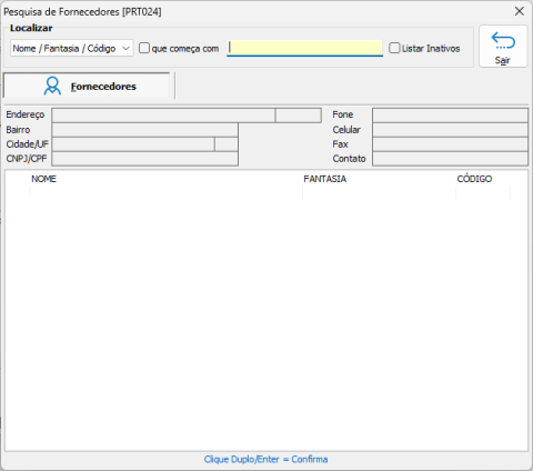 - Informe o Fornecedor (digite o código ou clique em `...` para pesquisar);