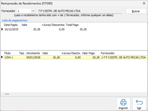 Para reimprimir comprovantes de pagamentos anteriores, clique no botão Recibo.