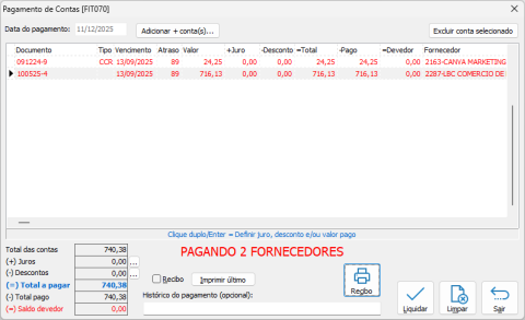 Após conferir os valores totais no rodapé ("Total a pagar"), clique no botão Liquidar.