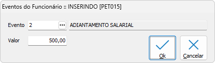 Na aba Eventos, é possível definir verbas que se repetem todo mês para este funcionário específico (Ex: Auxílio Combustível Fixo, Pensão Alimentícia, etc).