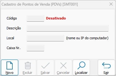| Código | Gerado automaticamente ao incluir um novo PDV. |