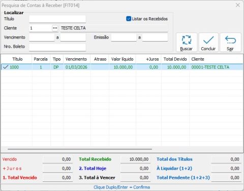 Permite localizar títulos já pagos e reimprimir o comprovante de recebimento.