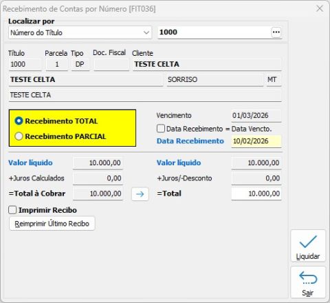Rotina destinada ao recebimento rápido de títulos localizados diretamente pelo número. Indicada para operações pontuais, sem necessidade de navegação por cliente.