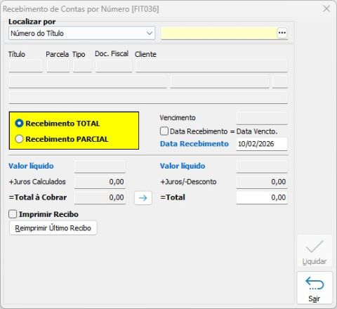 Recebimento por Número [FIT036]