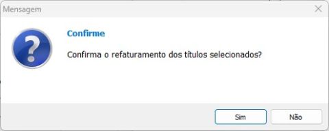 Ao clicar em Refaturar, o sistema exibirá uma mensagem de confirmação para validar a operação.