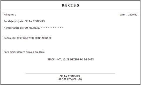 Utilize esta função para gerar recibos manuais quando não há emissão de documento fiscal ou quando o recibo serve apenas como comprovante financeiro.